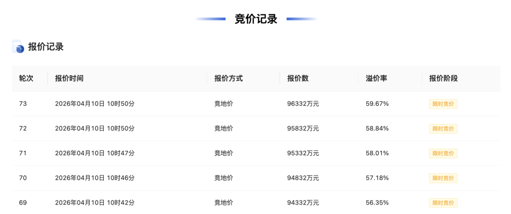 该地块经过73轮竞价后,由滨江集团旗下杭州滨寅房地产开发有限公司以总价9.63亿元竞得,成交楼面价19129元/平方米,溢价率59.67%。