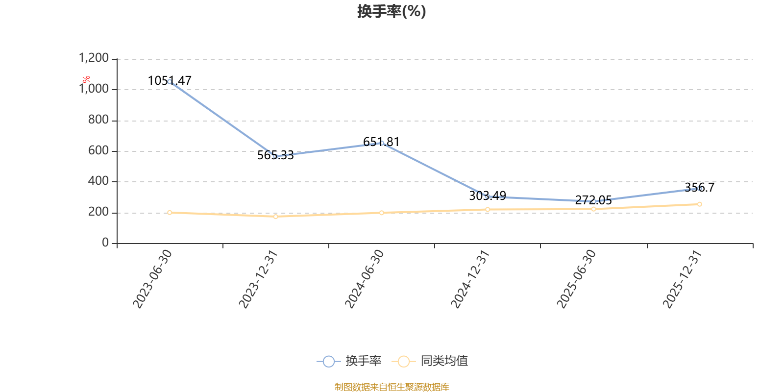 截至2025年12月31日,基金最近一年换手率约642.18%,持续高于同类均值。