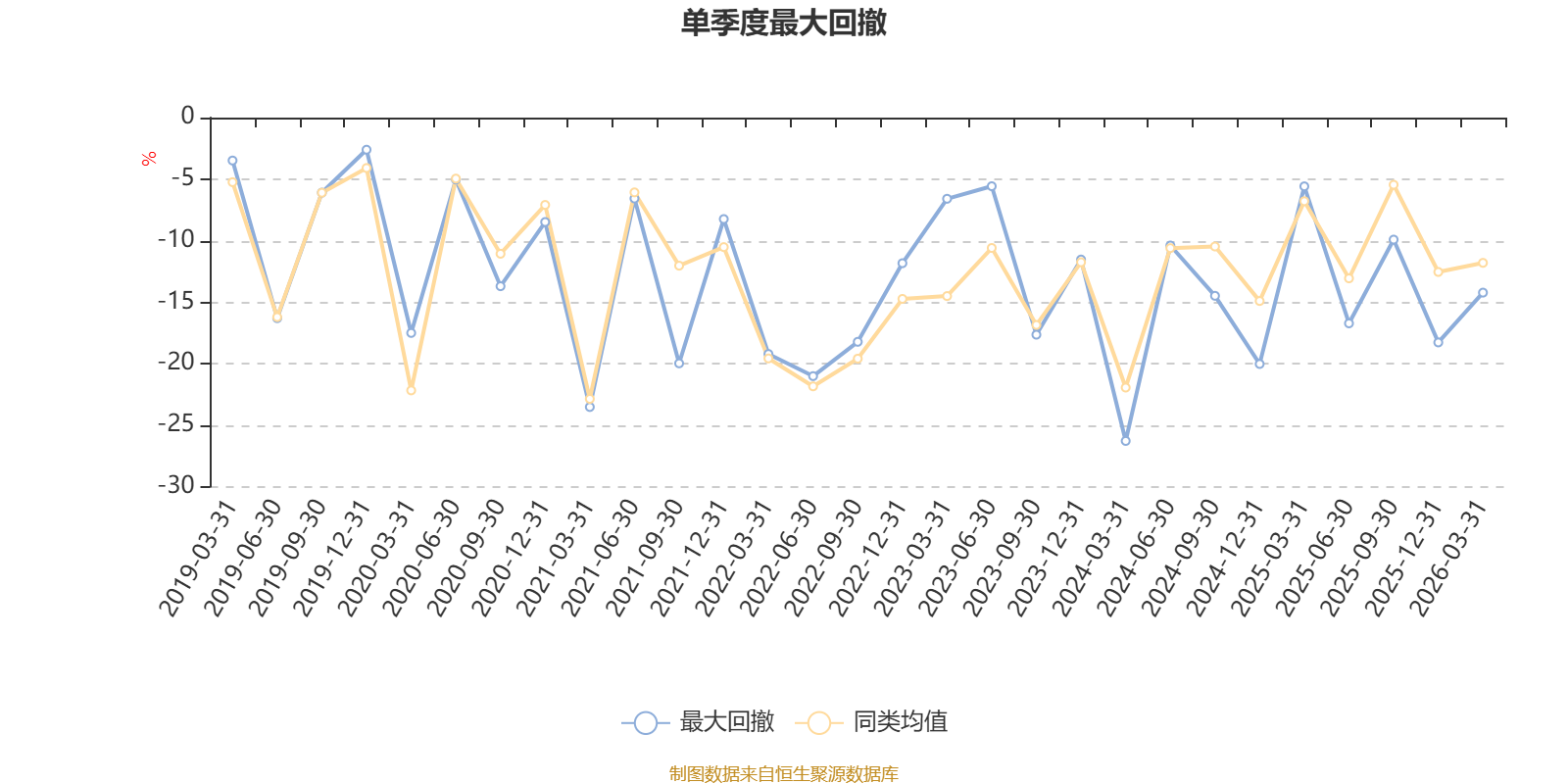 截至4月8日,基金近三年最大回撤为47.32%,同类可比基金排名26/32。单季度最大回撤出现在2024年一季度,为26.29%。
