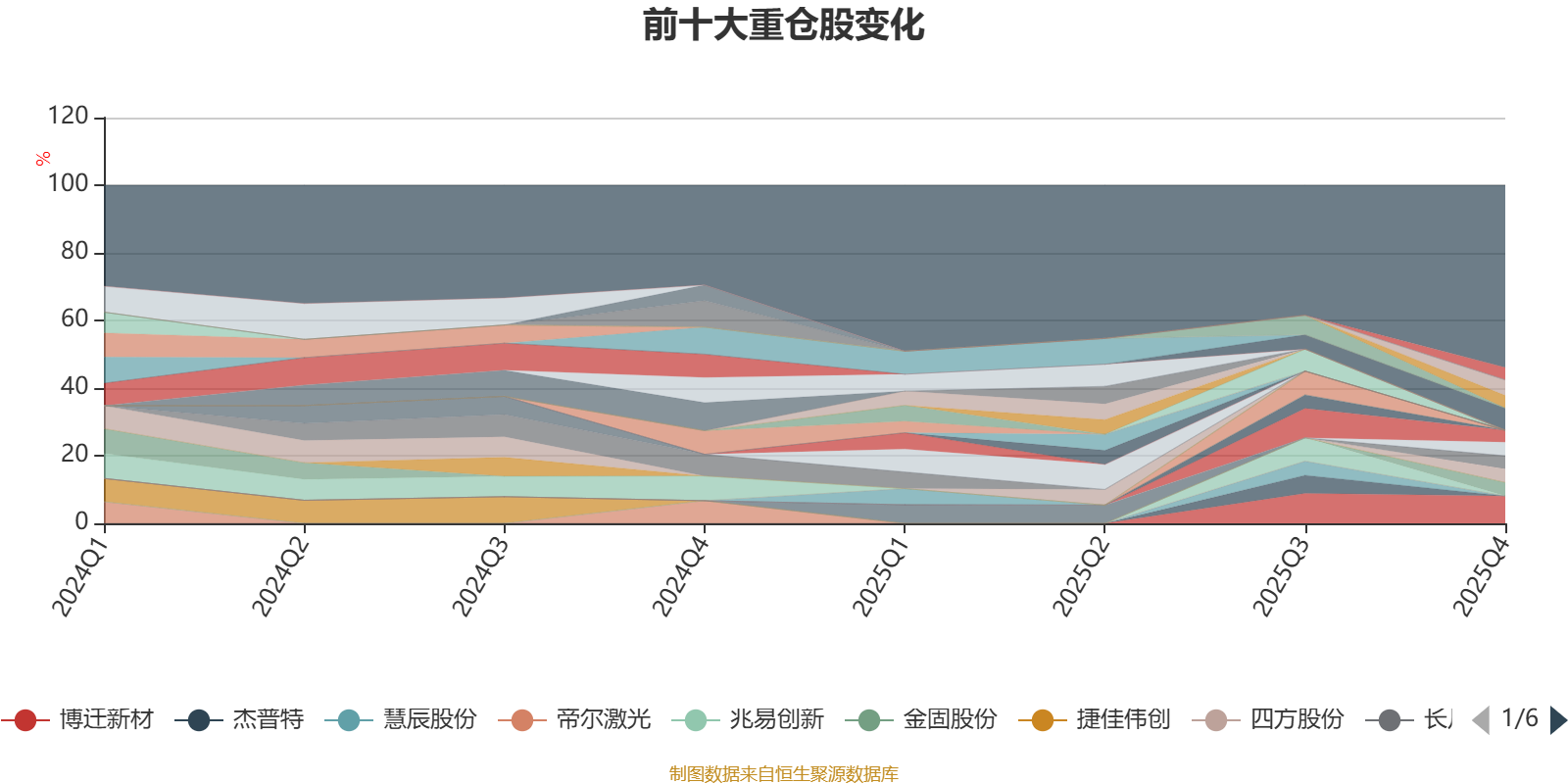 截至2025年末,基金十大重仓股分别是博迁新材、中际旭创、紫金矿业、汇绿生态、四方股份、金固股份、长川科技、胜宏科技、钧达股份、寒武纪。