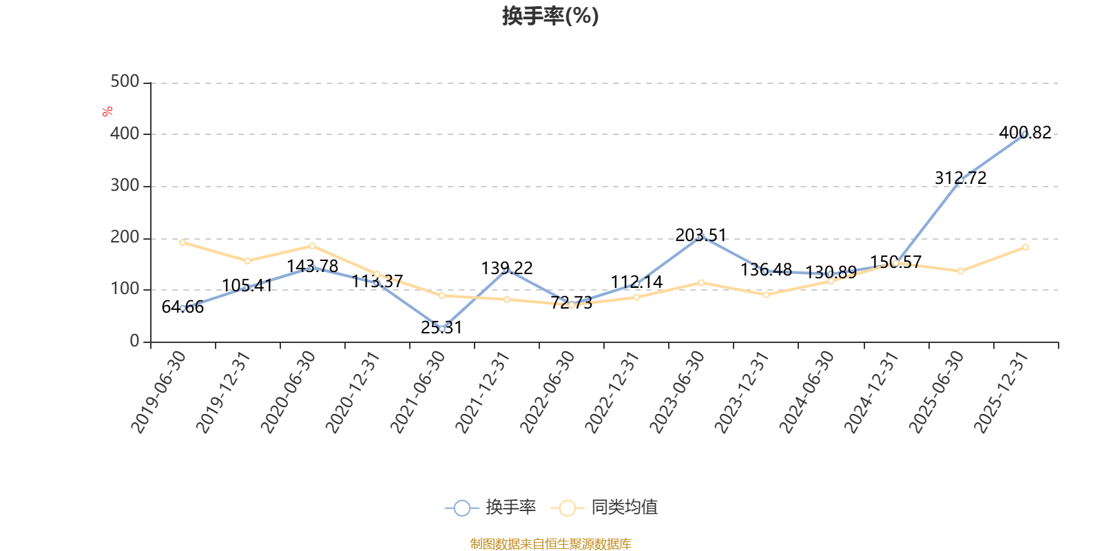 截至2025年12月31日,基金最近一年换手率约718.44%,持续1年高于同类均值。
