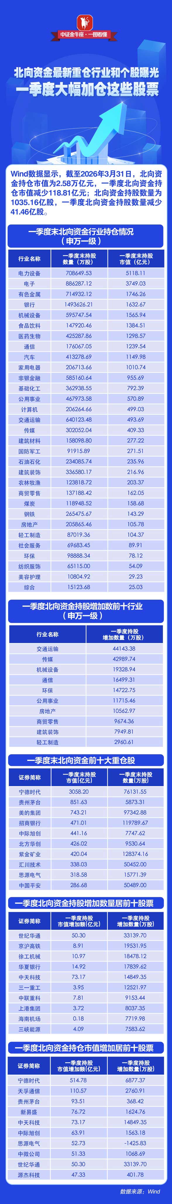 【一图看懂】北向资金最新重仓行业和个股曝光,一季度大幅加仓这些股票