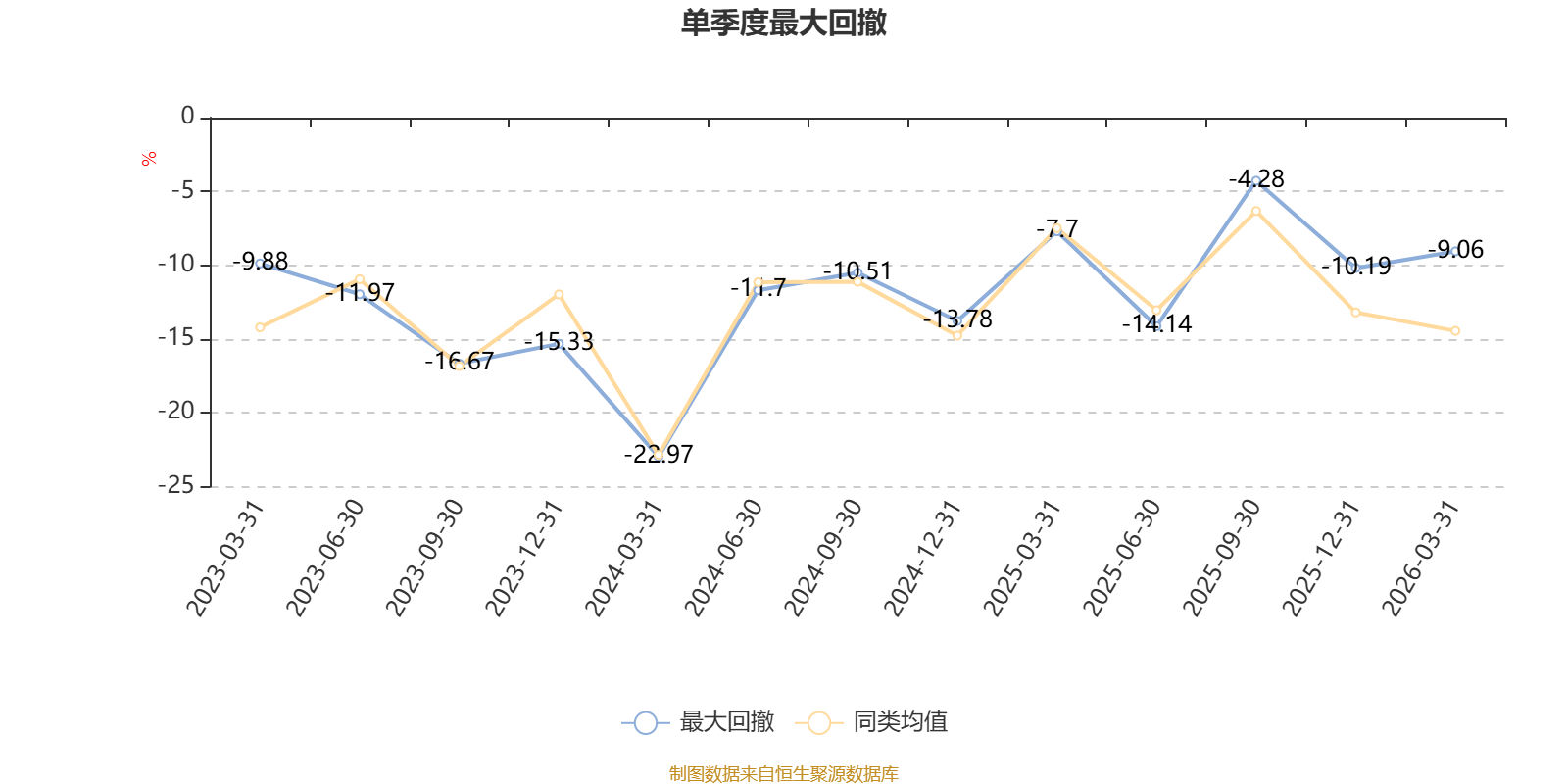 截至4月9日,基金近三年最大回撤为43.56%,同类可比基金排名34/52。单季度最大回撤出现在2024年一季度,为22.97%。