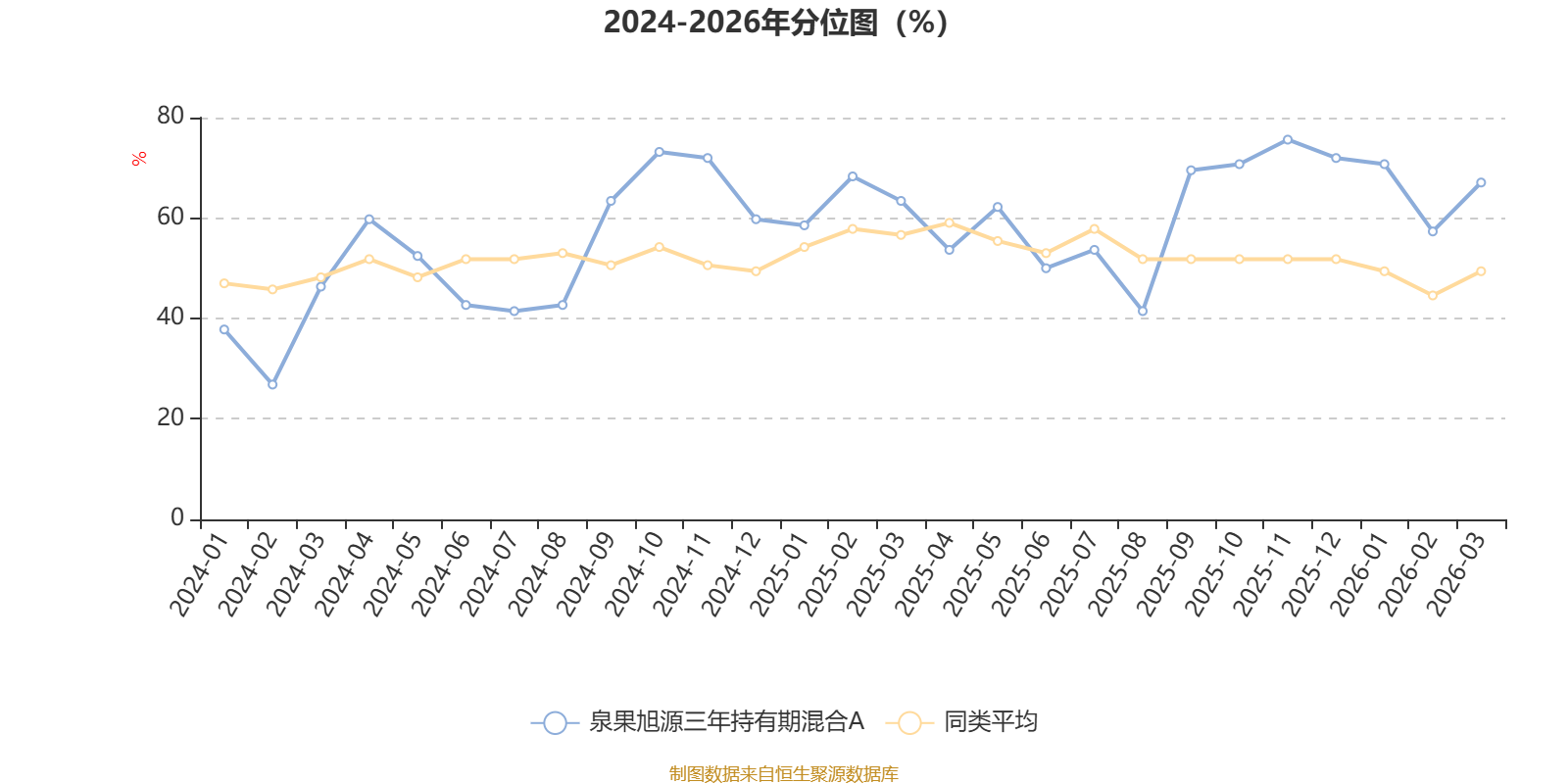 通过所选区间该基金净值增长率分位图,可以观察该基金与同类基金业绩比较情况。图为坐标原点到区间内某时点的净值增长率在同类基金中的分位数。