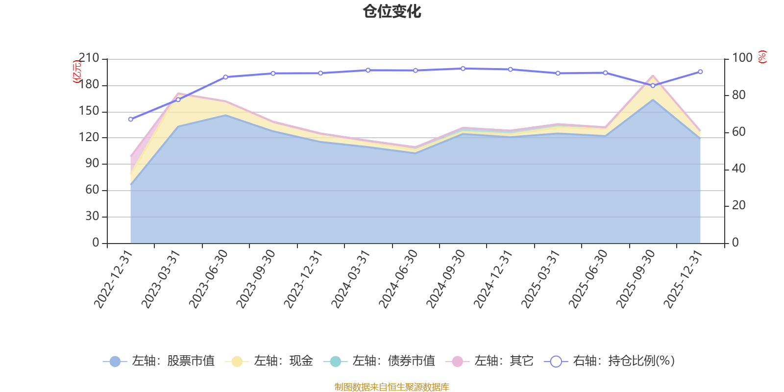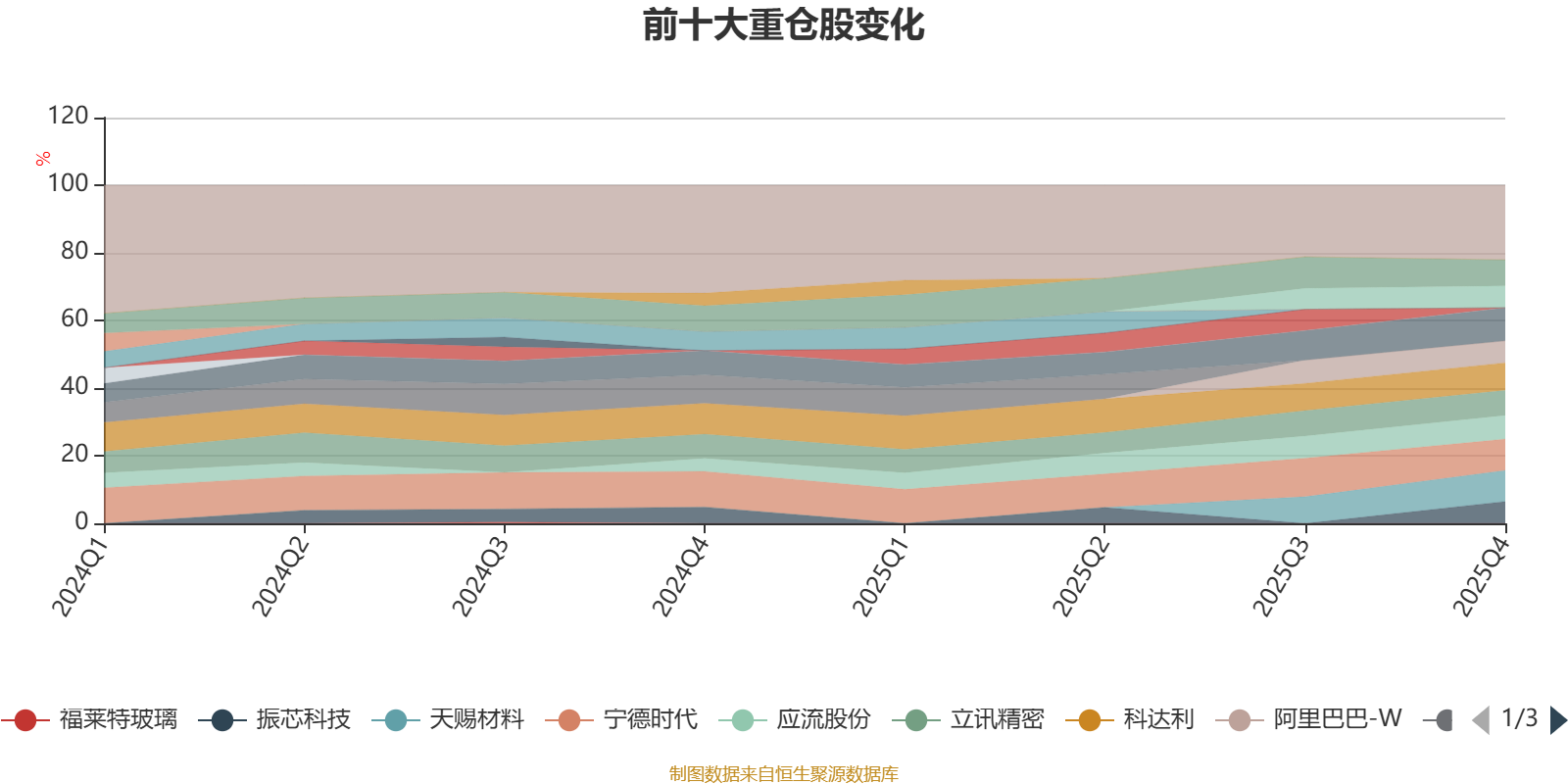 该基金持股集中度较高,近2年前十大重仓股集中度长期超过60%。截至2025年末,基金十大重仓股分别是恩捷股份、宁德时代、天赐材料、科达利、腾讯控股、立讯精密、应流股份、振芯科技、阿里巴巴-W、中芯国际。