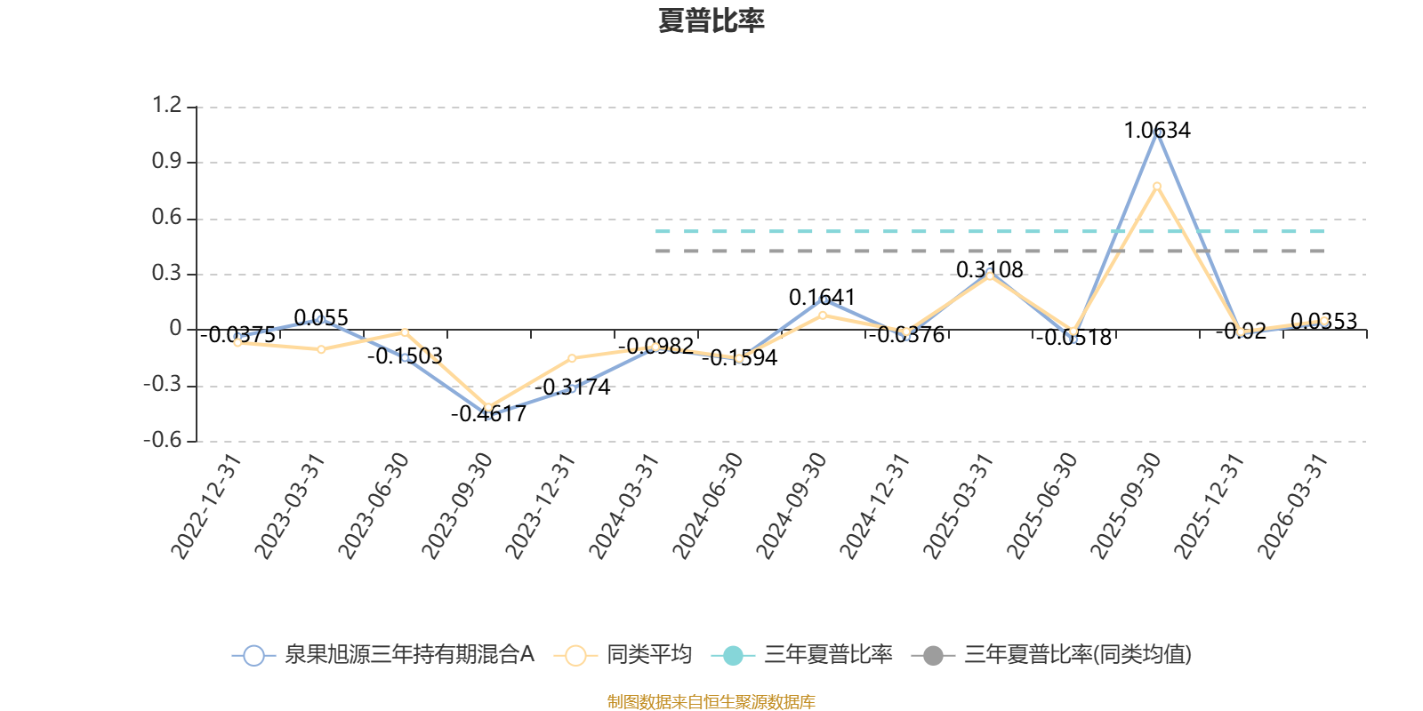 截至3月31日,基金近三年夏普比率为0.5303,位于同类可比基金30/72。