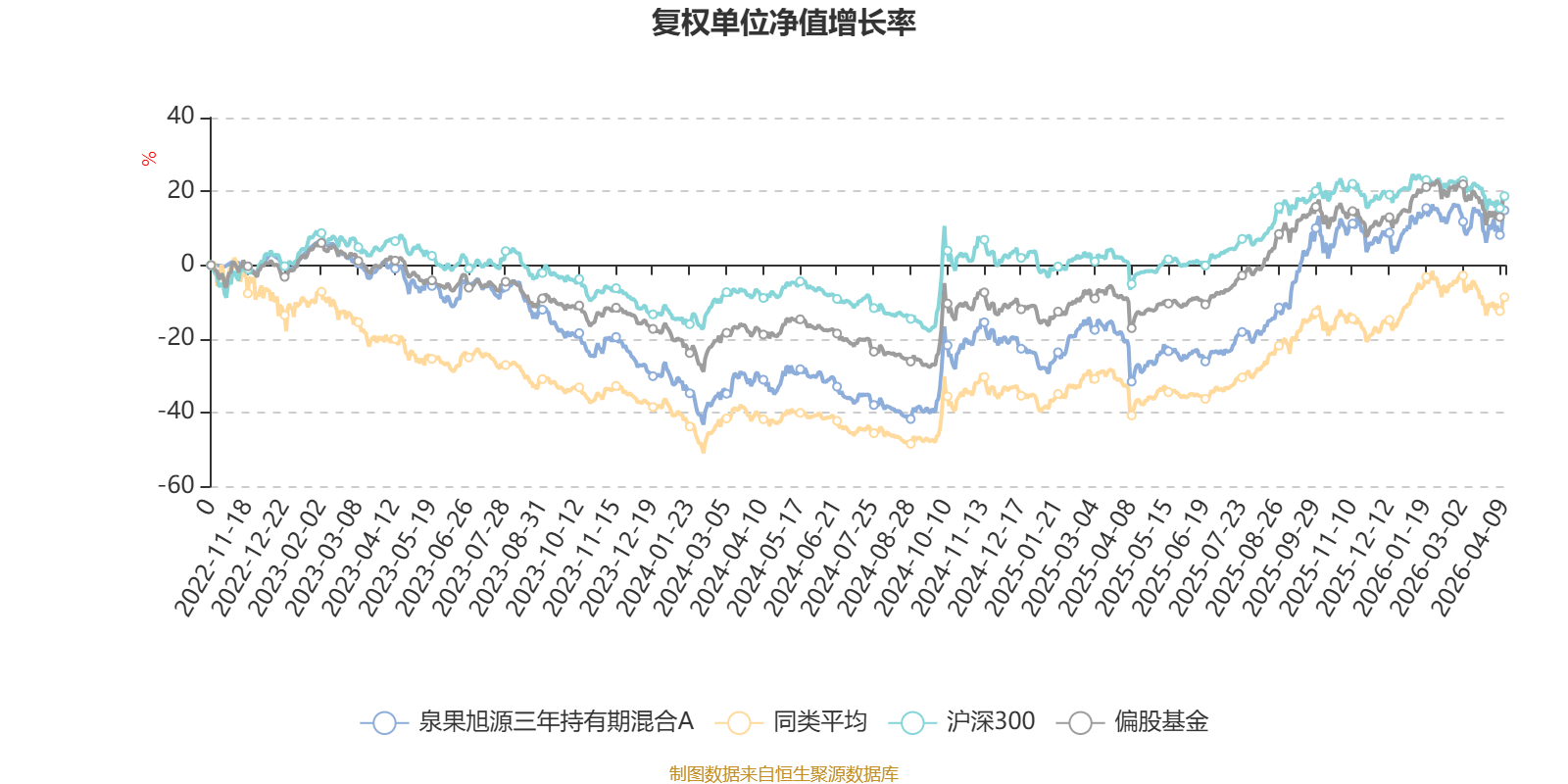 截至4月9日,泉果旭源三年持有期混合A近三个月复权单位净值增长率为1.94%,位于同类可比基金25/100;近半年复权单位净值增长率为1.34%,位于同类可比基金40/100;近一年复权单位净值增长率为66.21%,位于同类可比基金20/99;近三年复权单位净值增长率为15.07%,位于同类可比基金38/76。