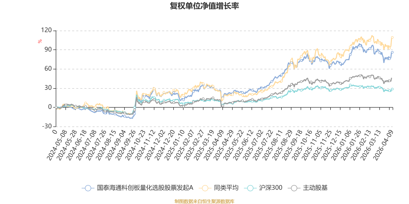 截至4月9日,国泰海通科创板量化选股股票发起A近三个月复权单位净值增长率为-2.30%,位于同类可比基金43/63;近半年复权单位净值增长率为1.12%,位于同类可比基金35/63;近一年复权单位净值增长率为61.04%,位于同类可比基金41/63。
