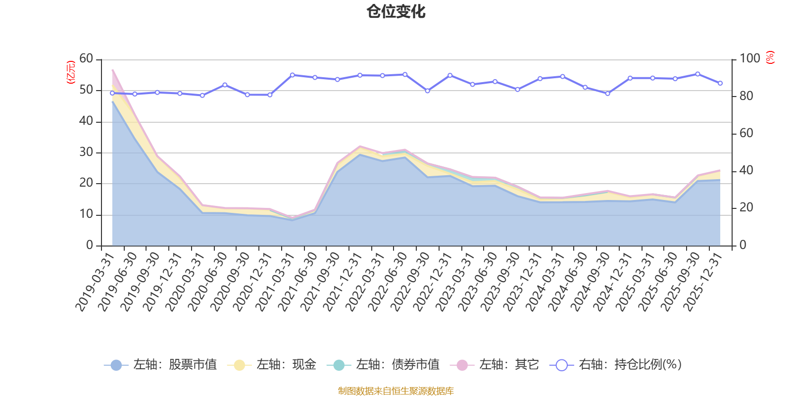 据定期报告数据统计,近三年平均股票仓位为87.9%,同类平均为88.64%。2025年三季度末基金达到92.17%的最高仓位,2020年一季度末最低,为80.68%。
