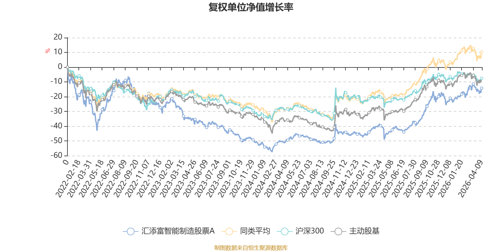 截至4月9日,汇添富智能制造股票A近三个月复权单位净值增长率为6.73%,位于同类可比基金7/58;近半年复权单位净值增长率为2.59%,位于同类可比基金25/58;近一年复权单位净值增长率为64.41%,位于同类可比基金15/57;近三年复权单位净值增长率为32.05%,位于同类可比基金24/57。