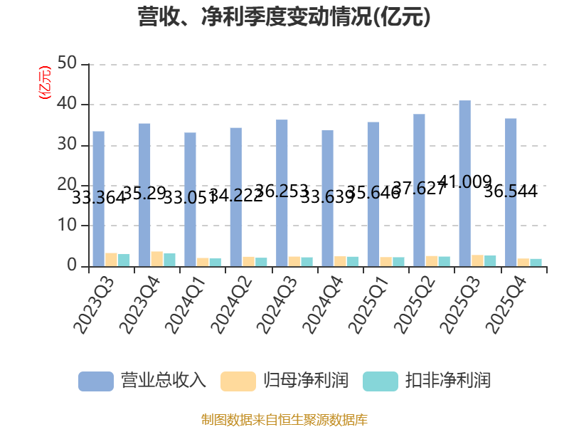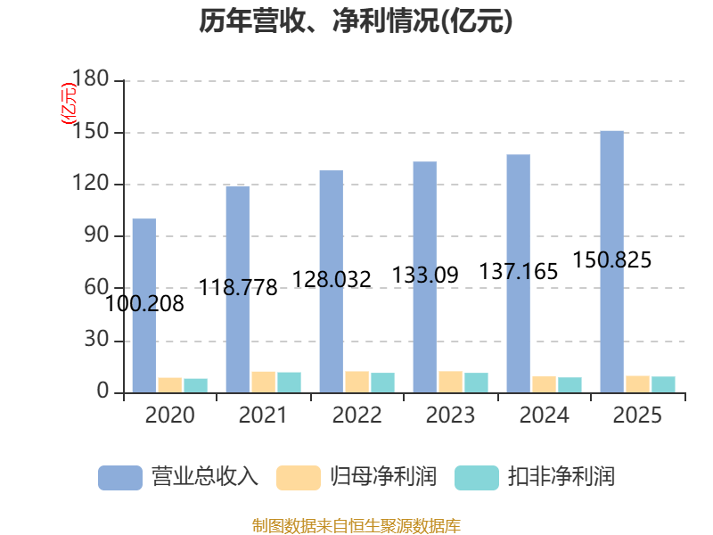 中证智能财讯杭氧股份(002430)4月11日披露2025年年度报告。2025年,公司实现营业总收入150.83亿元,同比增长9.96%;归母净利润9.49亿元,同比增长2.87%;扣非净利润9.1亿元,同比增长5.68%;经营活动产生的现金流量净额为22.2亿元,同比下降1.14%;报告期内,杭氧股份基本每股收益为0.97元,加权平均净资产收益率为9.95%。公司2025年度分配预案为:拟向全体股东每10股派现3元(含税)。