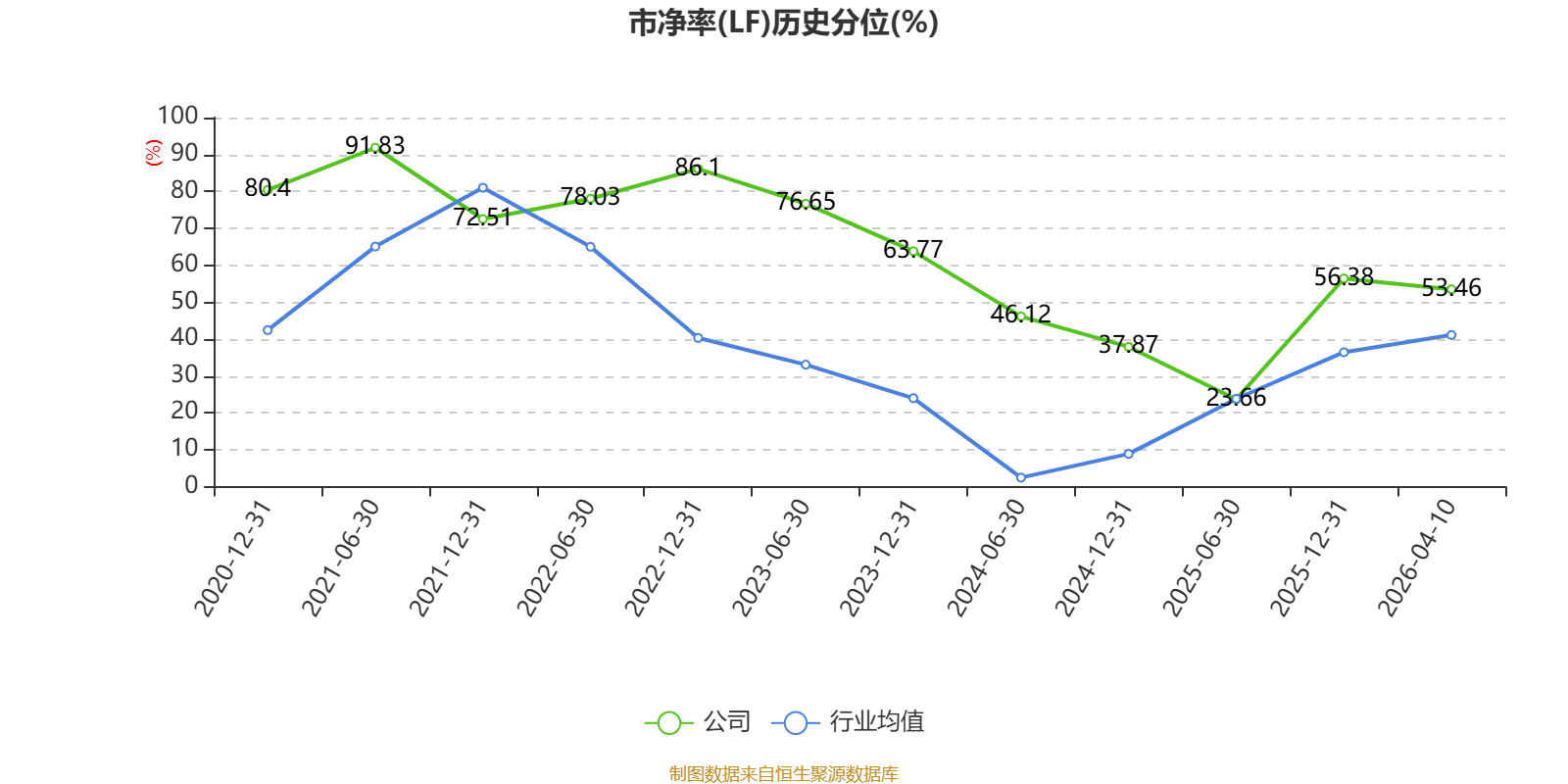 市盈率、市净率为负时,不显示当期分位数,会导致折线图中断。