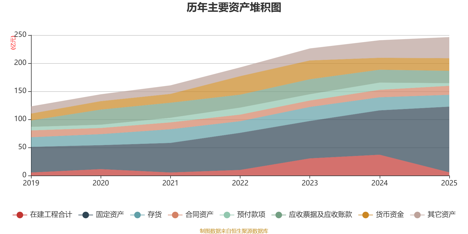资产重大变化方面,截至2025年末,公司固定资产较上年末增加48.03%,占公司总资产比重上升14.63个百分点;在建工程合计较上年末减少84.84%,占公司总资产比重下降13.09个百分点;预付款项较上年末减少63.53%,占公司总资产比重下降3.45个百分点;一年内到期的非流动资产占公司总资产的2.03%,上年末为0。