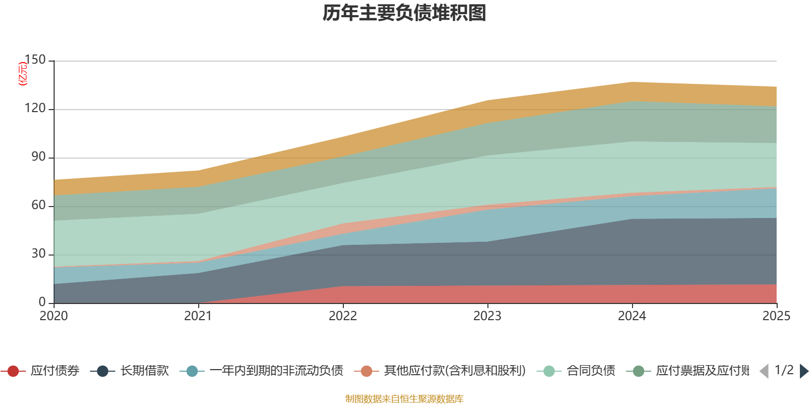 负债重大变化方面,截至2025年末,公司合同负债较上年末减少14.59%,占公司总资产比重下降2.19个百分点;一年内到期的非流动负债较上年末增加30.58%,占公司总资产比重上升1.61个百分点;应付票据及应付账款较上年末减少8.88%,占公司总资产比重下降1.14个百分点;其他应付款(含利息和股利)较上年末减少58.78%,占公司总资产比重下降0.52个百分点。