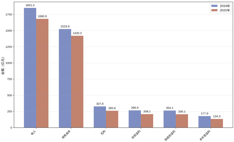 毛利率方面,也从2023年、2024年的20.32%、17.7%,降至2025年的15.51%。