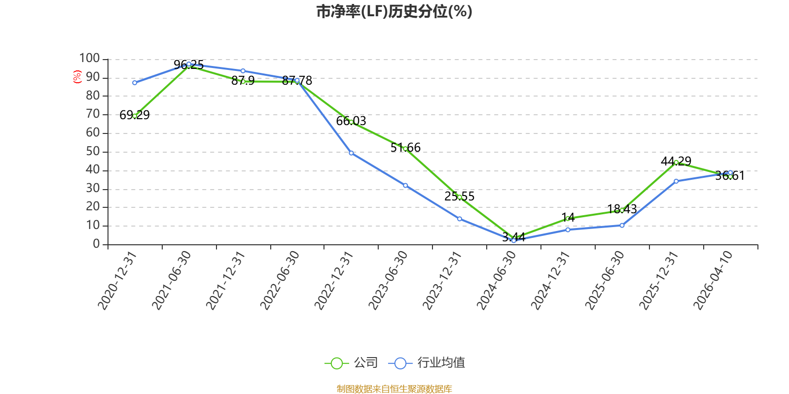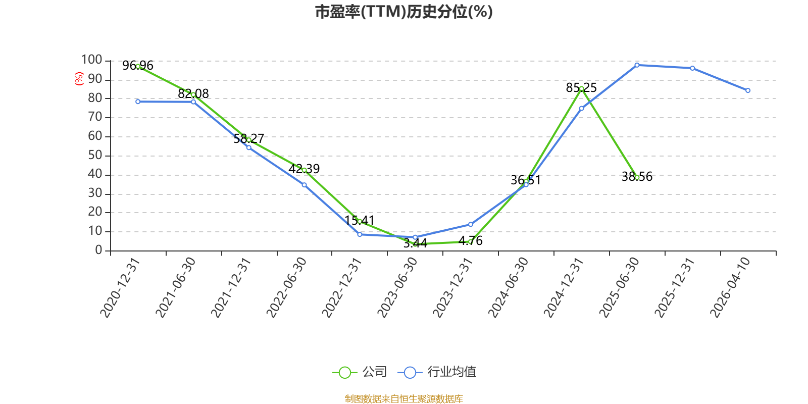 市盈率、市净率为负时,不显示当期分位数,会导致折线图中断。
