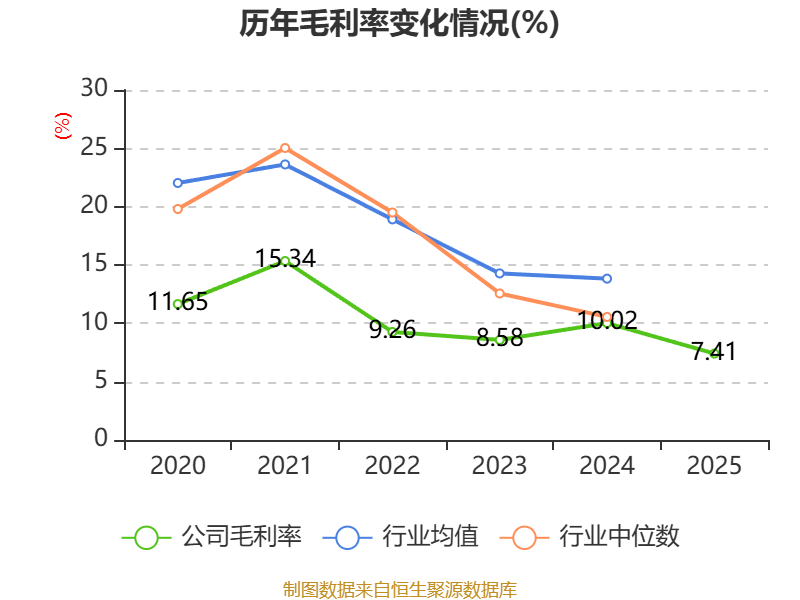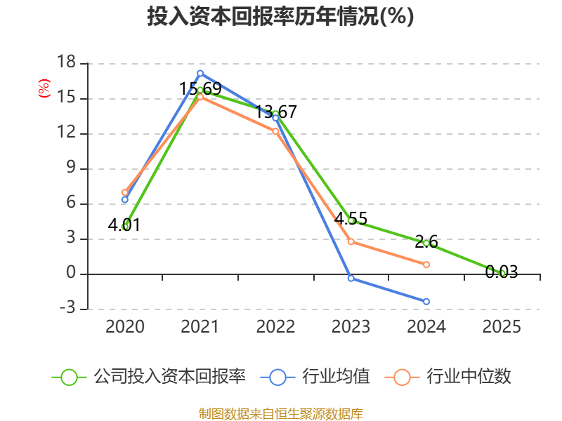 数据显示,2025年公司加权平均净资产收益率为-2.29%,较上年同期下降5.75个百分点。公司2025年投入资本回报率为0.03%,较上年同期下降2.57个百分点。