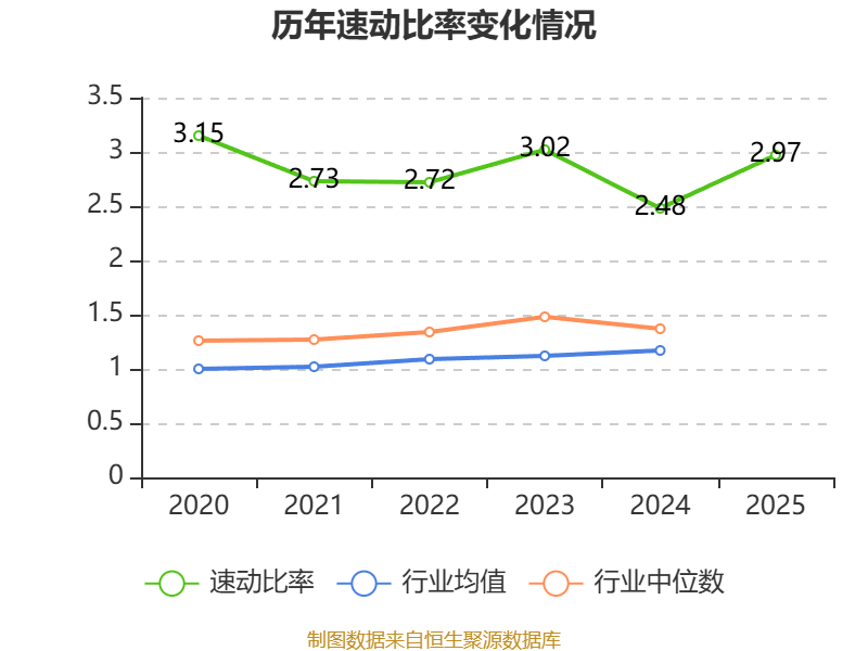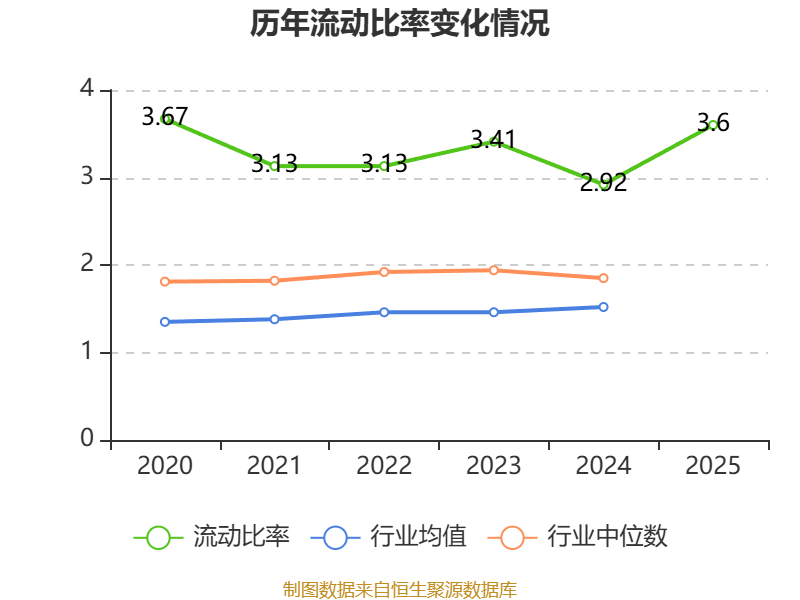 2025年,公司流动比率为3.6,速动比率为2.97。