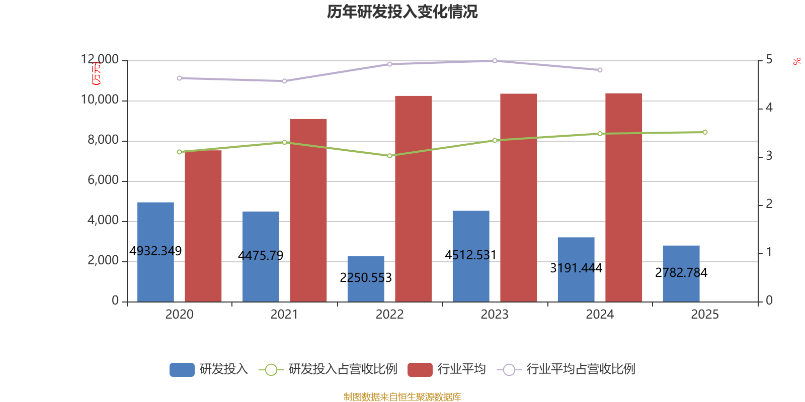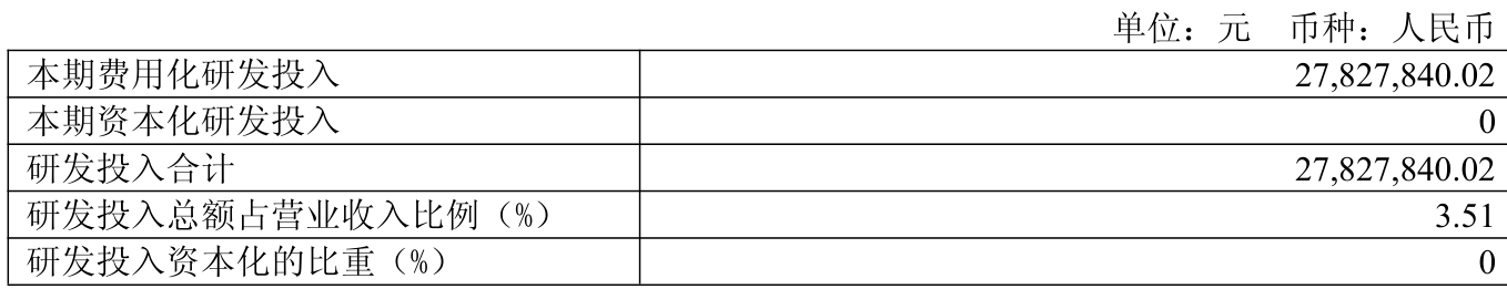 2025年全年,公司研发投入金额为2782.78万元,同比下降12.8%;研发投入占营业收入比例为3.51%,相比上年同期上升0.03个百分点。此外,公司全年研发投入资本化率为0%。