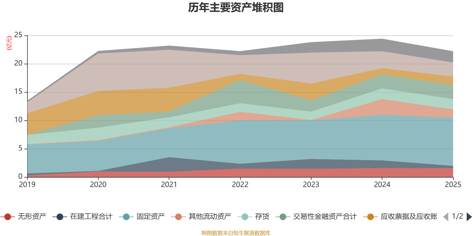 资产重大变化方面,截至2025年末,公司固定资产较上年末增加5.44%,占公司总资产比重上升5.27个百分点;其他流动资产较上年末减少47.35%,占公司总资产比重下降4.77个百分点;在建工程合计较上年末减少68.88%,占公司总资产比重下降3.66个百分点;应收票据及应收账款较上年末增加41.1%,占公司总资产比重上升2.4个百分点。