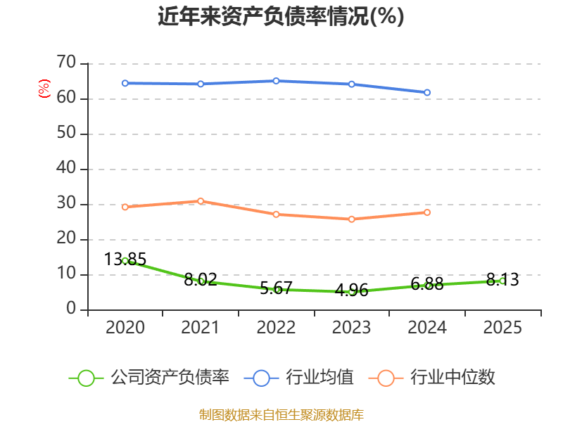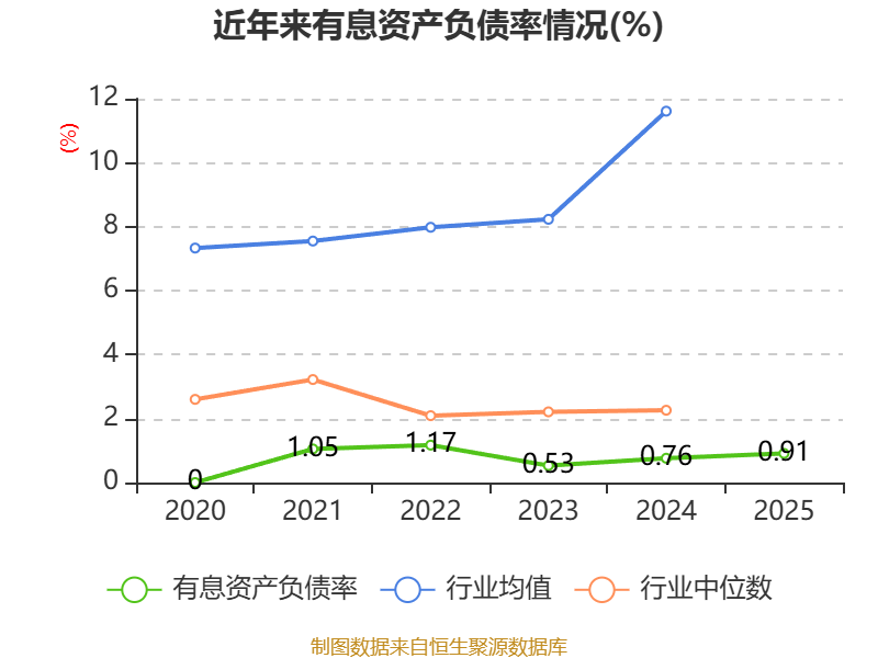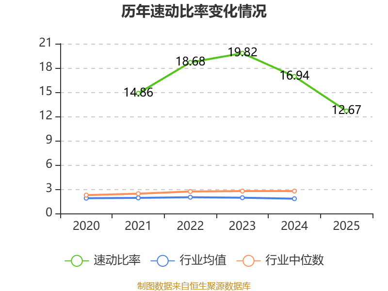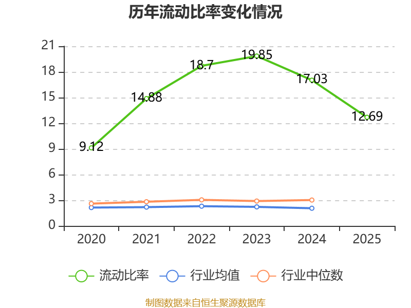 2025年,公司流动比率为12.69,速动比率为12.67。