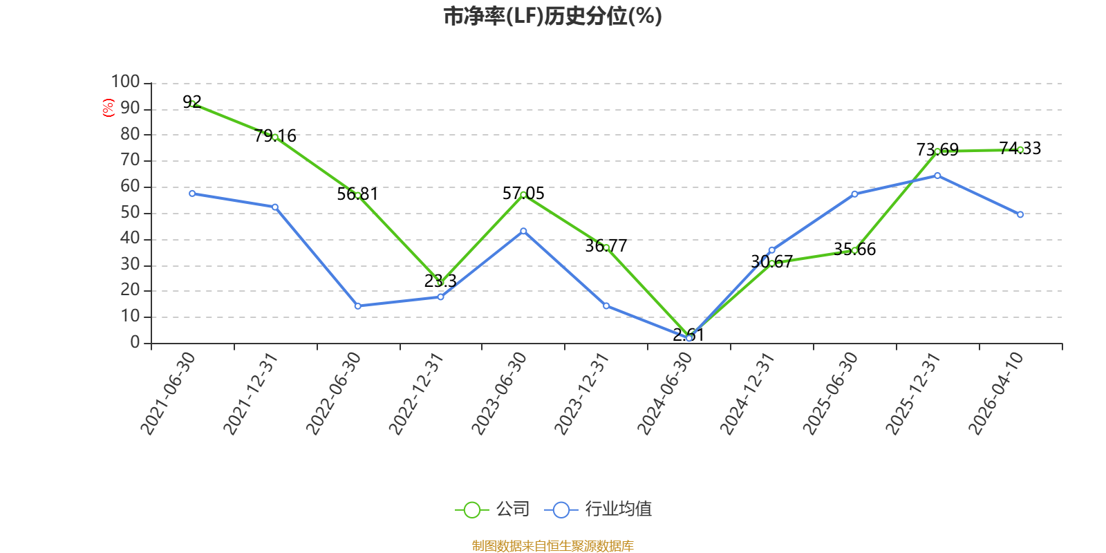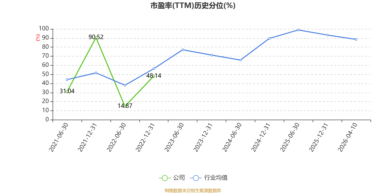 市盈率、市净率为负时,不显示当期分位数,会导致折线图中断。