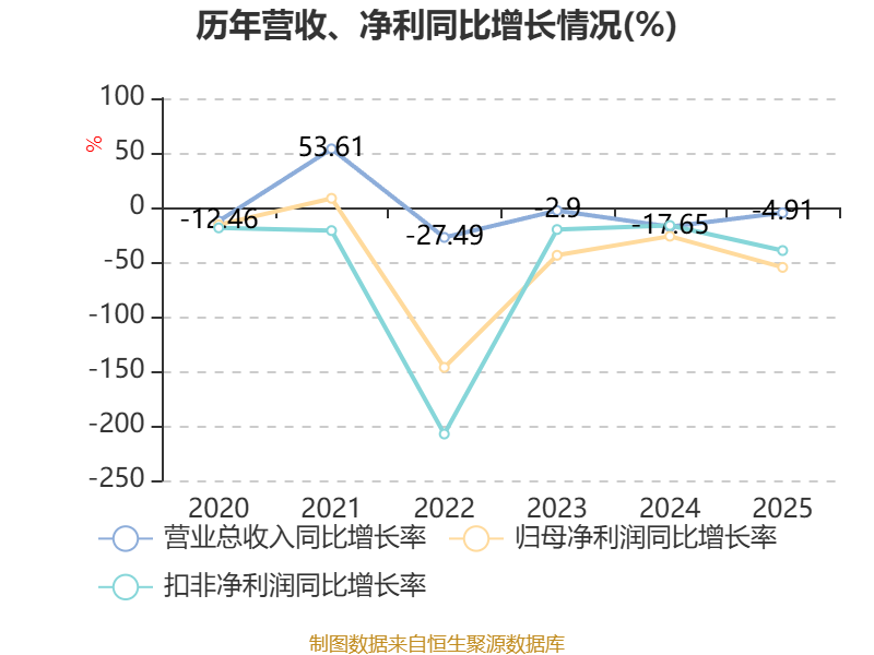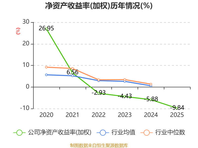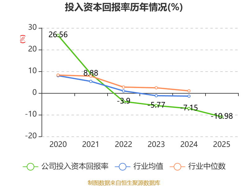 数据显示,2025年公司加权平均净资产收益率为-9.84%,较上年同期下降3.96个百分点。公司2025年投入资本回报率为-10.98%,较上年同期下降3.83个百分点。