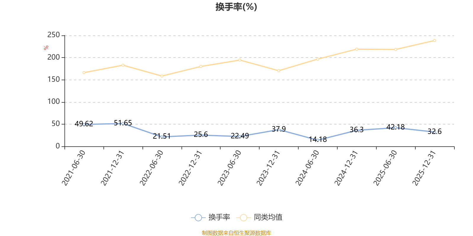 截至2025年12月31日,基金最近一年换手率约76.81%,持续低于同类均值。