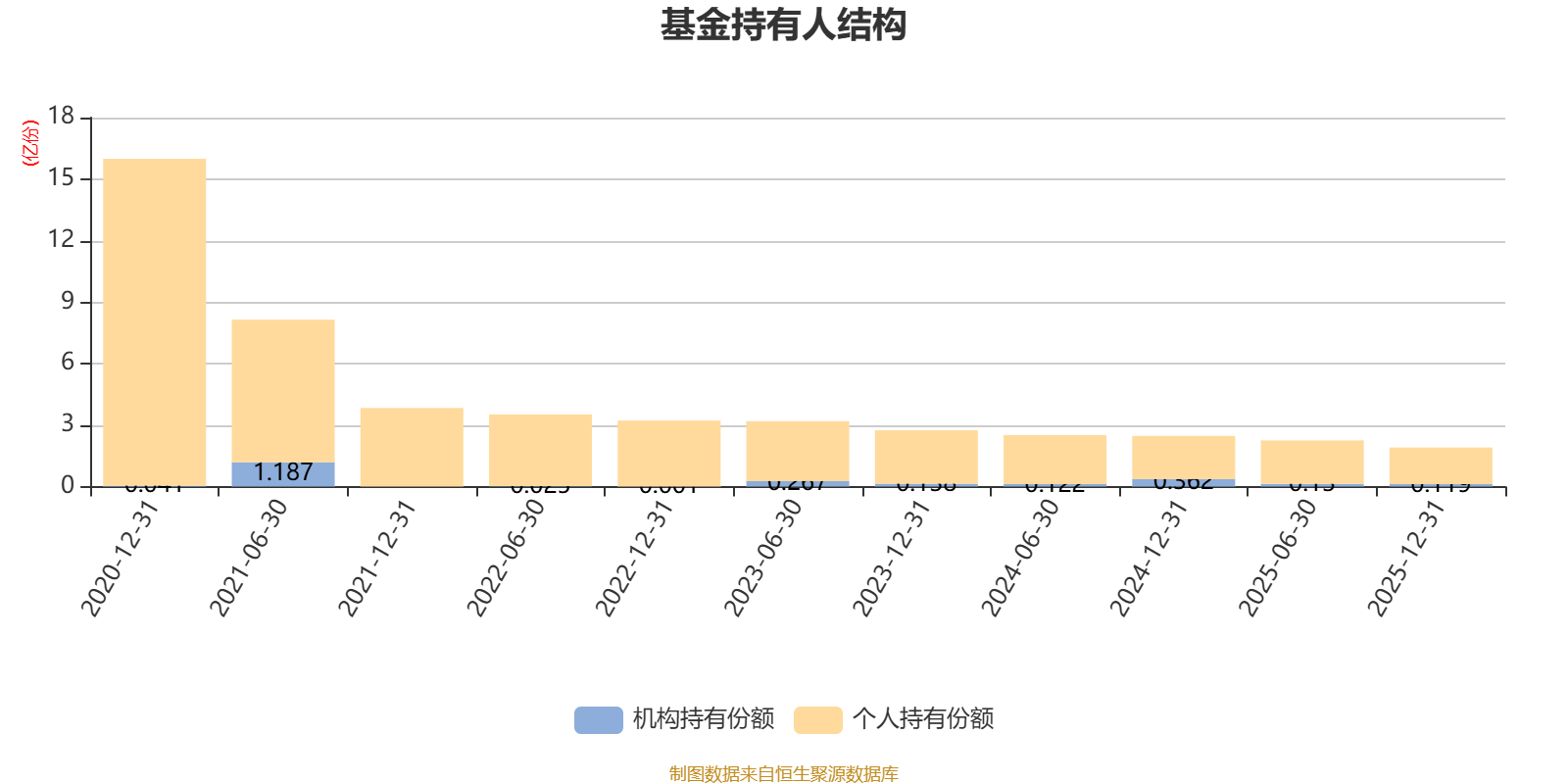 截至2025年12月31日,基金持有人共计8103户,合计持有1.9亿份。其中管理人员工持有70.84万份,占比0.37%,机构持有份额占比6.23%,个人投资者占比93.77%。