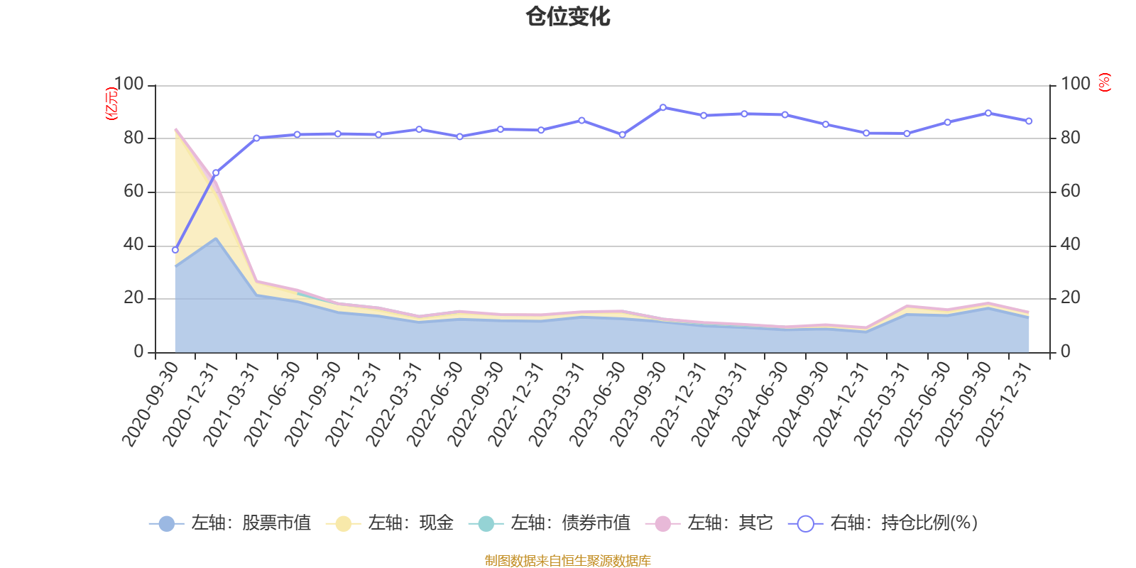 据定期报告数据统计,近三年平均股票仓位为86.56%,同类平均为88.27%。2023年三季度末基金达到91.7%的最高仓位,2020年三季度末最低,为38.38%。