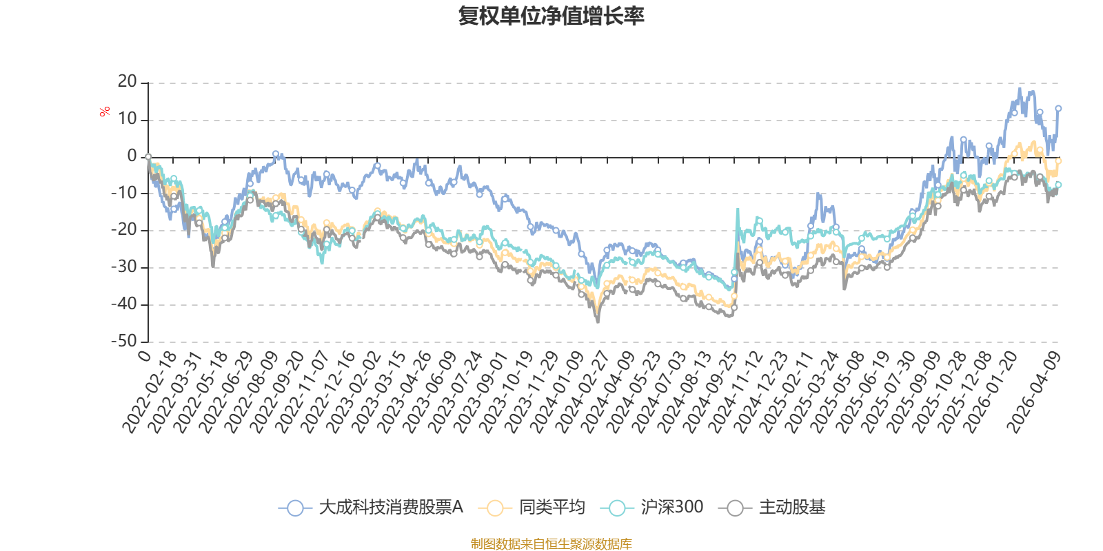 该基金属于标准股票型基金。截至4月9日,单位净值为1.124元。基金经理是杜聪,目前管理3只基金。其中,截至4月9日,大成成长进取混合A近一年复权单位净值增长率最高,达90.11%;大成科技消费股票A最低,为59.52%。