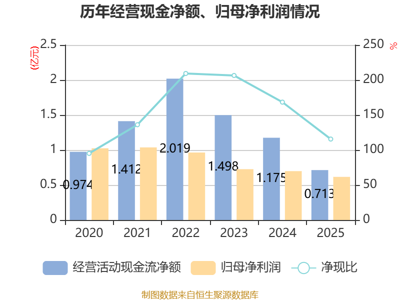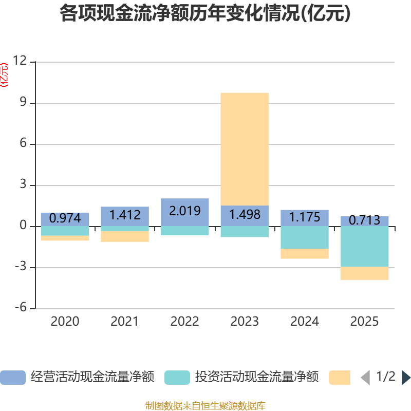 截至2025年,公司经营活动现金流净额为7127.63万元,同比下降39.31%;筹资活动现金流净额-9479.57万元,同比减少2221.98万元;投资活动现金流净额-2.99亿元,上年同期为-1.66亿元。