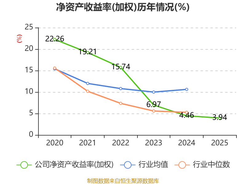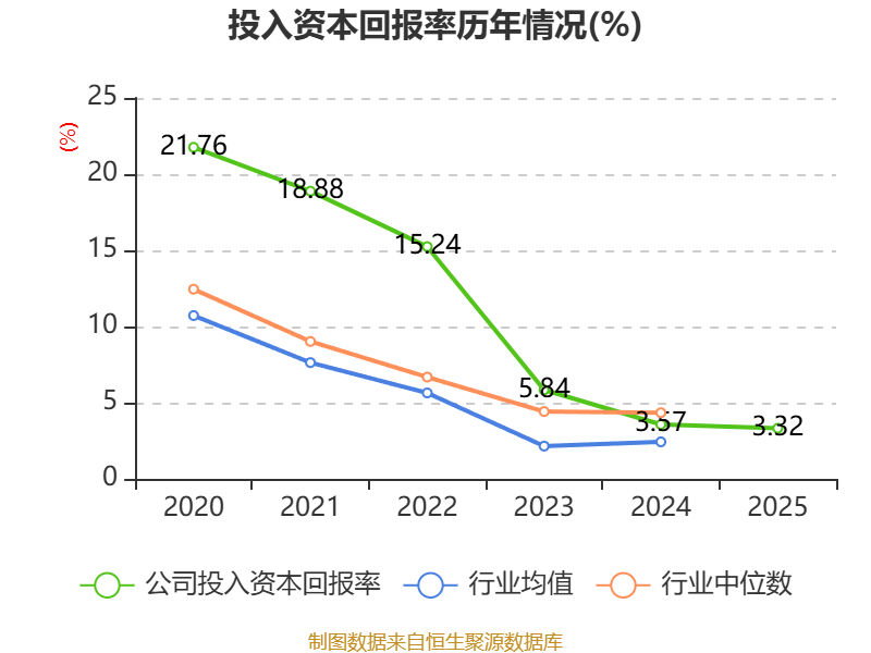 数据显示,2025年公司加权平均净资产收益率为3.94%,较上年同期下降0.52个百分点。公司2025年投入资本回报率为3.32%,较上年同期下降0.25个百分点。
