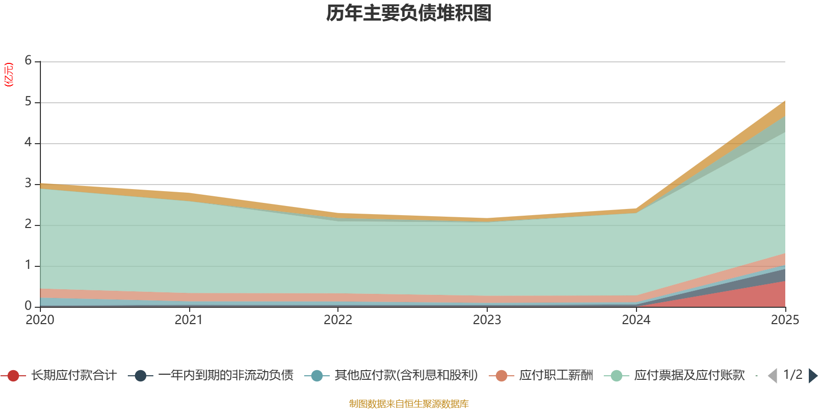 负债重大变化方面,截至2025年末,公司应付票据及应付账款较上年末增加46.81%,占公司总资产比重上升3.03个百分点;长期应付款合计占公司总资产的3.01%,上年末为0;短期借款占公司总资产的1.91%,上年末为0;一年内到期的非流动负债较上年末增加469.45%,占公司总资产比重上升1.13个百分点。