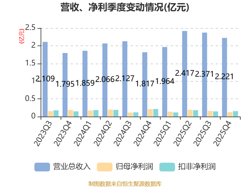 中证智能财讯信音电子(301329)4月11日披露2025年年度报告。2025年,公司实现营业总收入8.97亿元,同比增长14.04%;归母净利润6164.12万元,同比下降11.64%;扣非净利润6018.58万元,同比下降15.09%;经营活动产生的现金流量净额为7127.63万元,同比下降39.31%;报告期内,信音电子基本每股收益为0.36元,加权平均净资产收益率为3.94%。公司2025年度分配预案为:拟向全体股东每10股派现1.6元(含税)。