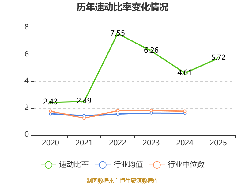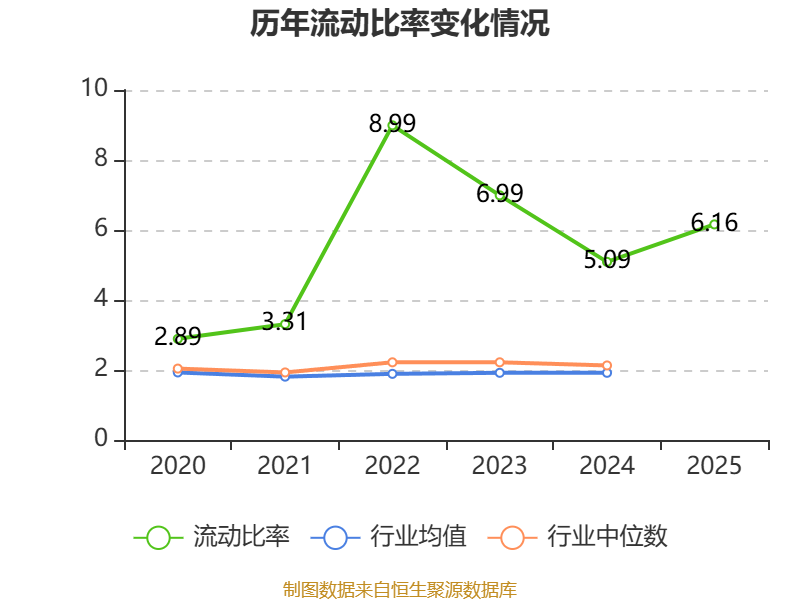 2025年,公司流动比率为6.16,速动比率为5.72。