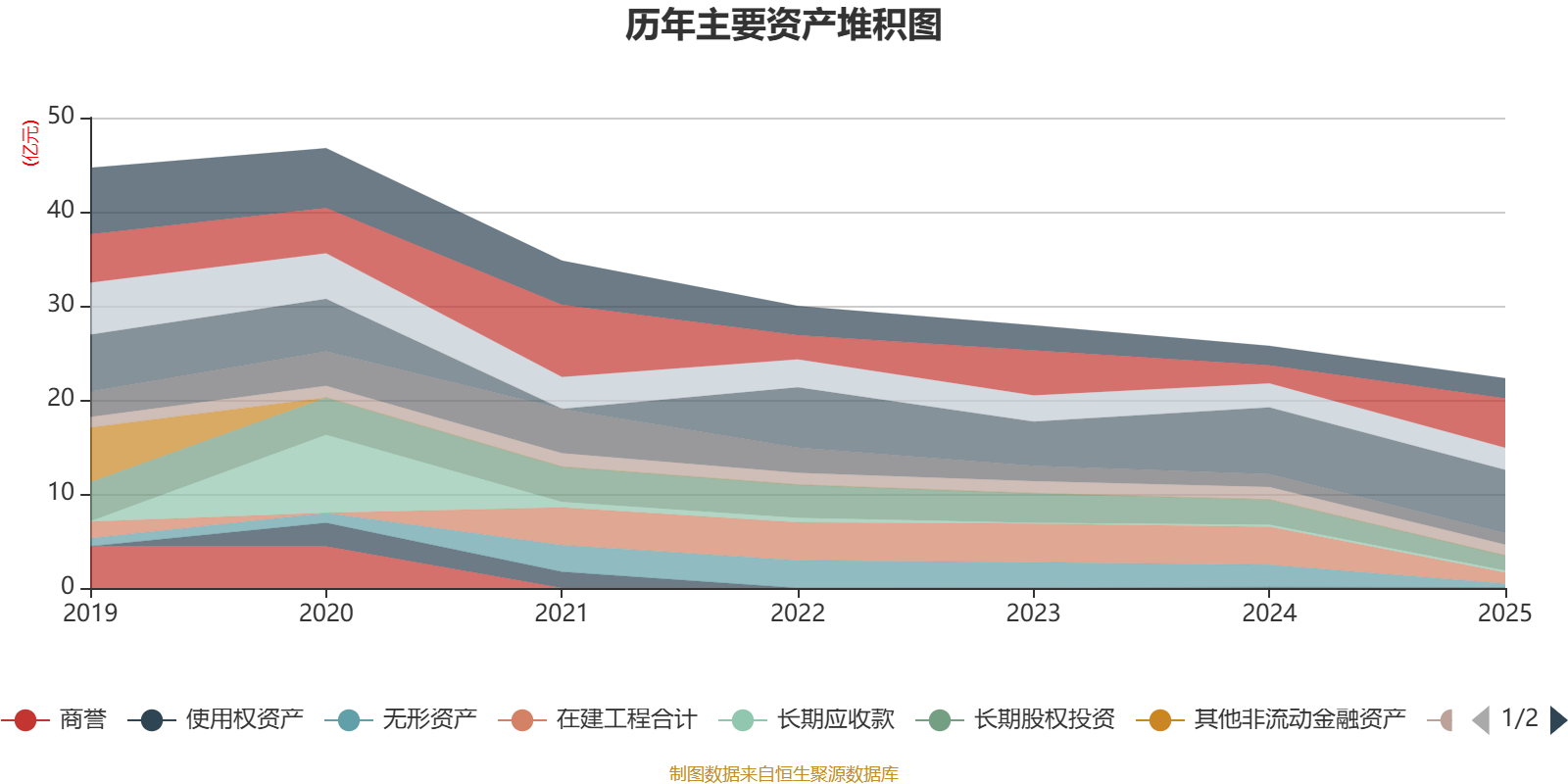 资产重大变化方面,截至2025年末,公司货币资金较上年末增加170.67%,占公司总资产比重上升16.02个百分点;在建工程合计较上年末减少71.23%,占公司总资产比重下降10.51个百分点;无形资产较上年末减少81.62%,占公司总资产比重下降7.28个百分点;长期股权投资较上年末减少40.03%,占公司总资产比重下降3.22个百分点。