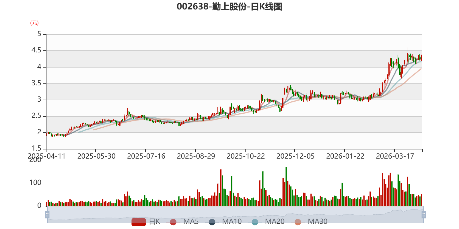 值得注意的是,中登公司数据显示,截至2026年4月3日,勤上股份20.93%股份处于质押状态。年报显示,第一大股东东莞勤上集团有限公司质押1.42亿股公司股份,占其全部持股的98.65%;第三大股东李旭亮质押8818.34万股公司股份,占其全部持股的100%;第五大股东李淑贤质押7054.67万股公司股份,占其全部持股的100%。