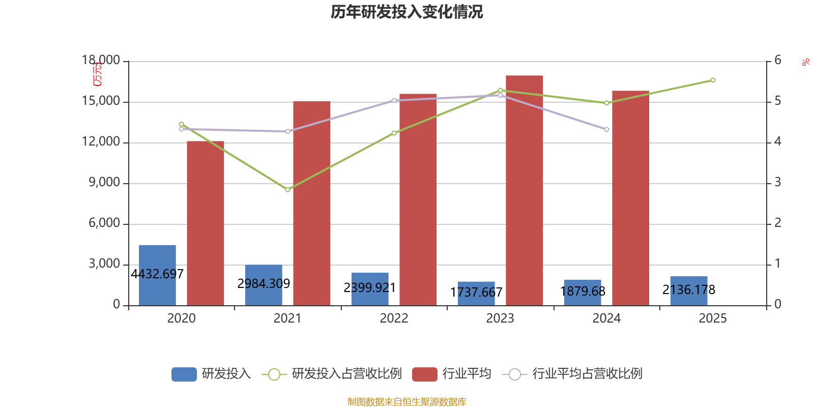 2025年全年,公司研发投入金额为2136.18万元,同比增长13.65%;研发投入占营业收入比例为5.53%,相比上年同期上升0.56个百分点。此外,公司全年研发投入资本化率为24.09%。