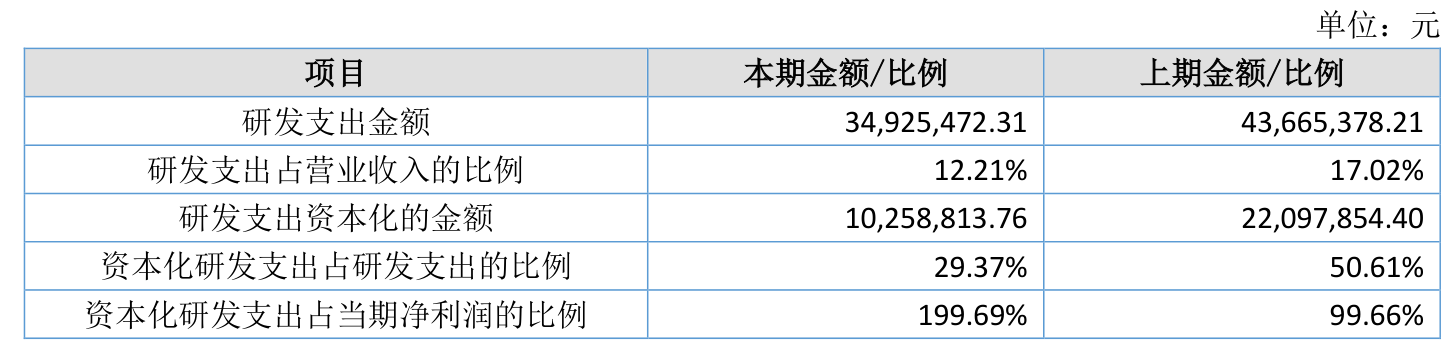 2025年全年,公司研发投入金额为3492.55万元,同比下降20.02%;研发投入占营业收入比例为12.21%,相比上年同期下降4.81个百分点。此外,公司全年研发投入资本化率为29.37%。