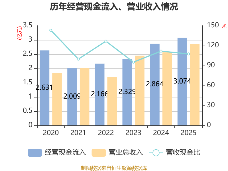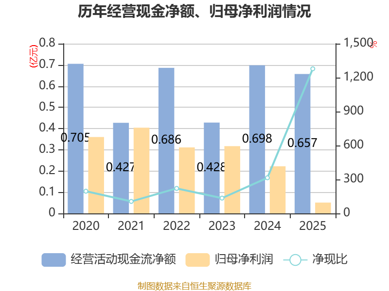 截至2025年,公司经营活动现金流净额为6565.53万元,同比下降5.93%;筹资活动现金流净额-660.9万元,同比增加1520.34万元;投资活动现金流净额-5701.25万元,上年同期为-1.12亿元。