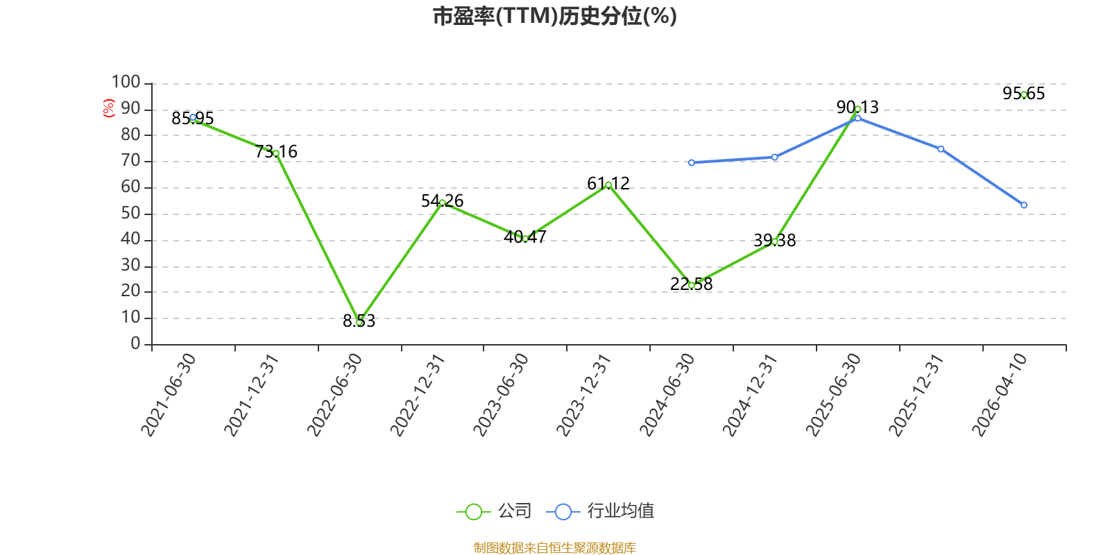 市盈率、市净率为负时,不显示当期分位数,会导致折线图中断。