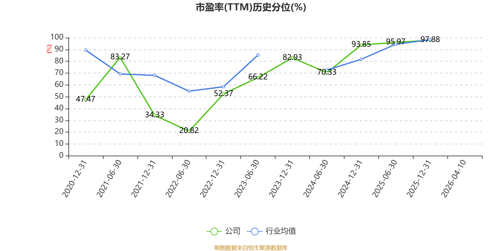 市盈率、市净率为负时,不显示当期分位数,会导致折线图中断。