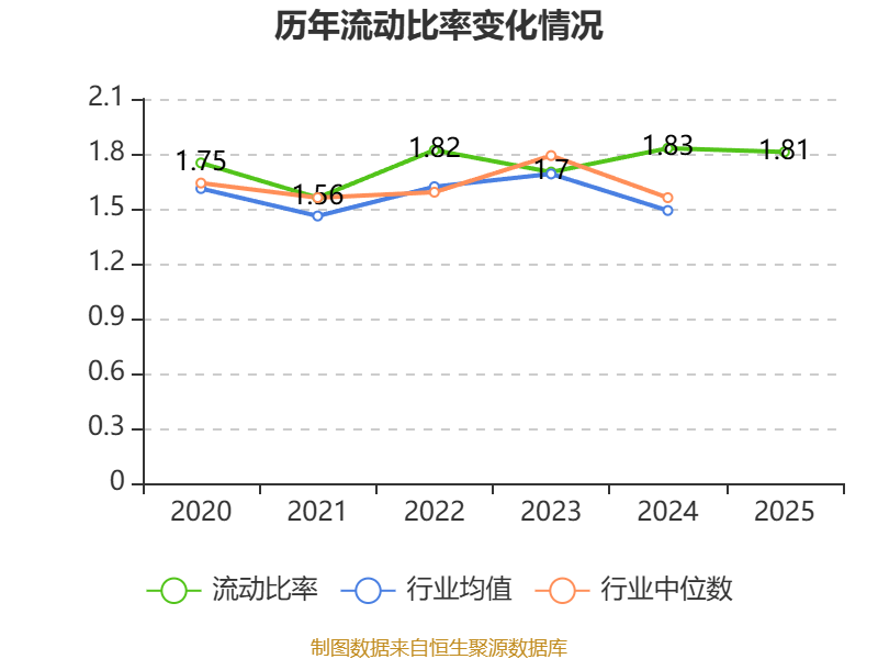 2025年,公司流动比率为1.81,速动比率为1.36。