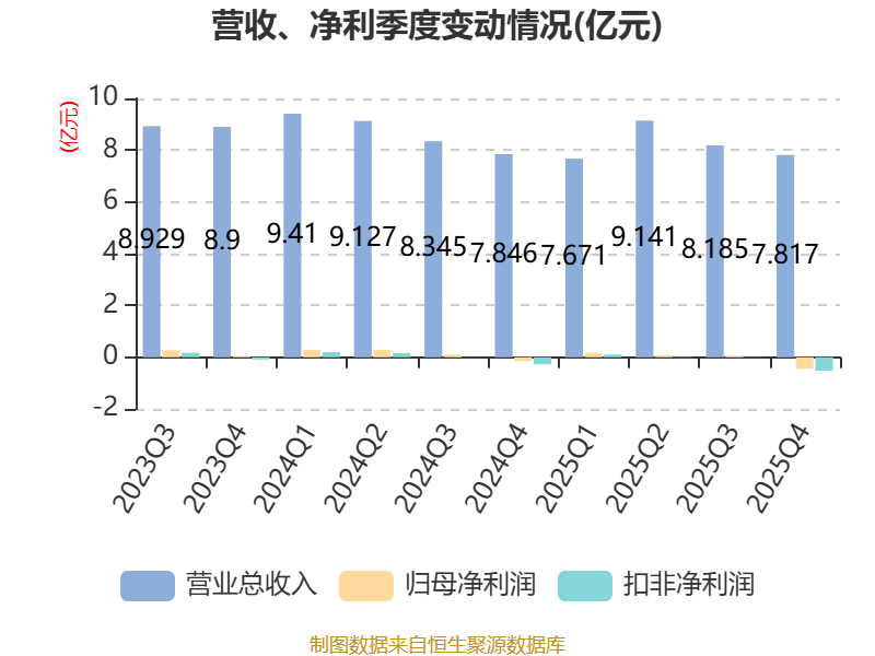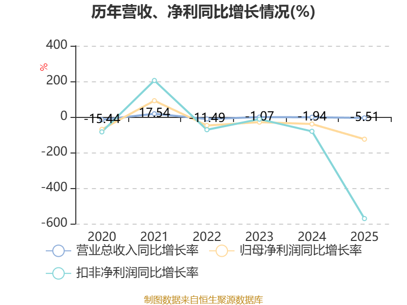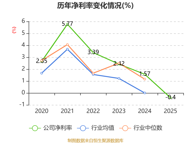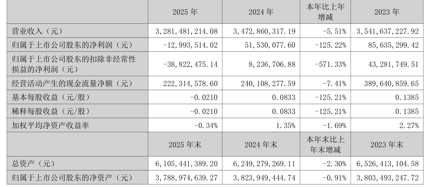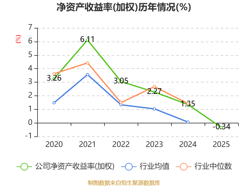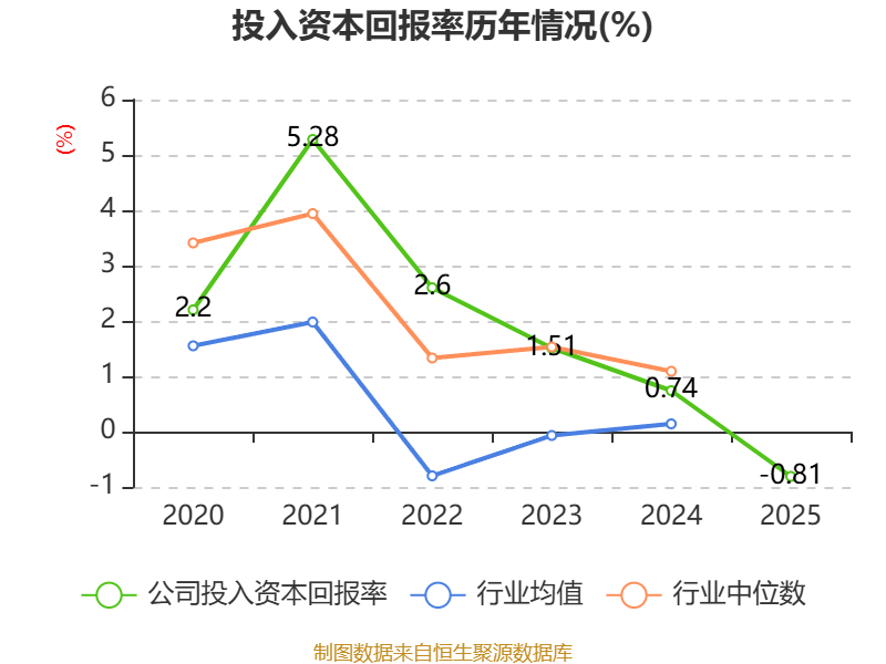数据显示,2025年公司加权平均净资产收益率为-0.34%,较上年同期下降1.69个百分点。公司2025年投入资本回报率为-0.81%,较上年同期下降1.55个百分点。
