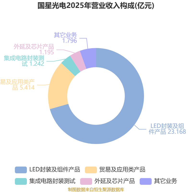 中证智能财讯国星光电(002449)4月11日披露2025年年度报告。2025年,公司实现营业总收入32.81亿元,同比下降5.51%;归母净利润亏损1299.35万元,上年同期盈利5153.01万元;扣非净利润亏损3882.25万元,上年同期盈利823.67万元;经营活动产生的现金流量净额为2.22亿元,同比下降7.41%;报告期内,国星光电基本每股收益为-0.021元,加权平均净资产收益率为-0.34%。