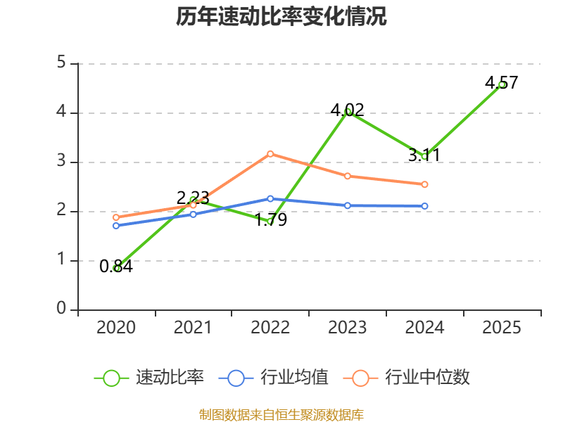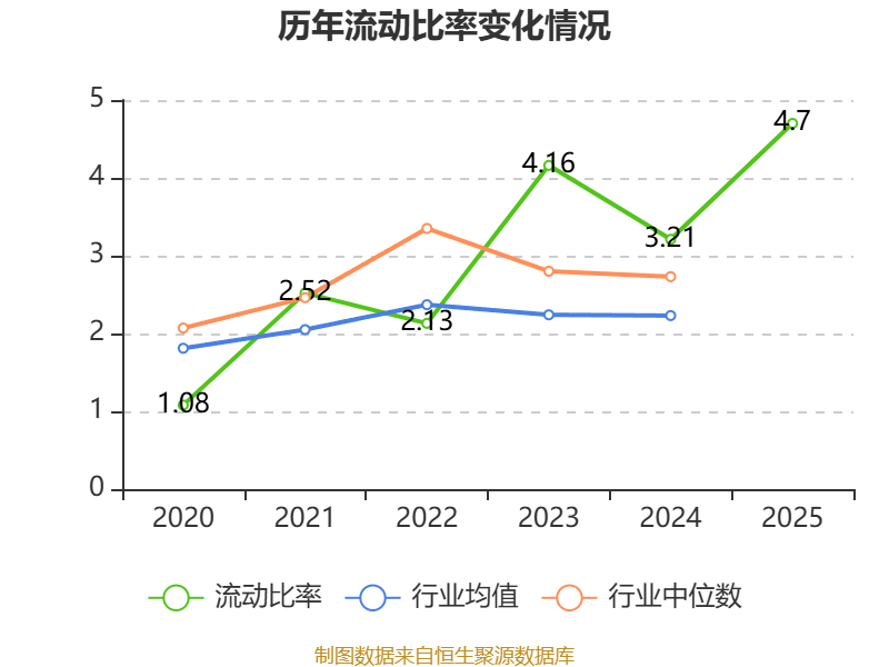 2025年,公司流动比率为4.7,速动比率为4.57。