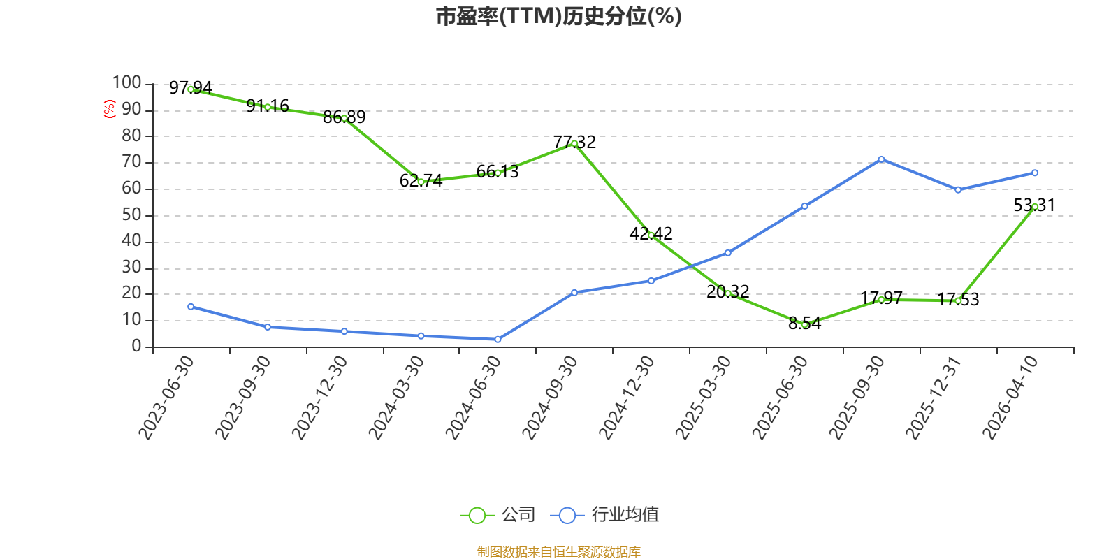 市盈率、市净率为负时,不显示当期分位数,会导致折线图中断。