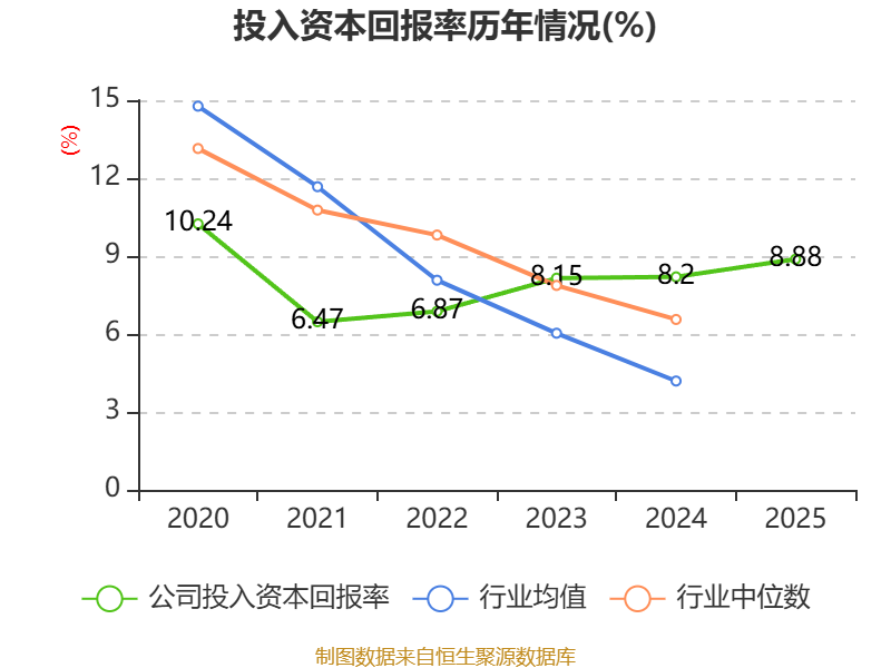 数据显示,2025年公司加权平均净资产收益率为8.69%,较上年同期上升1.16个百分点。公司2025年投入资本回报率为8.88%,较上年同期上升0.68个百分点。