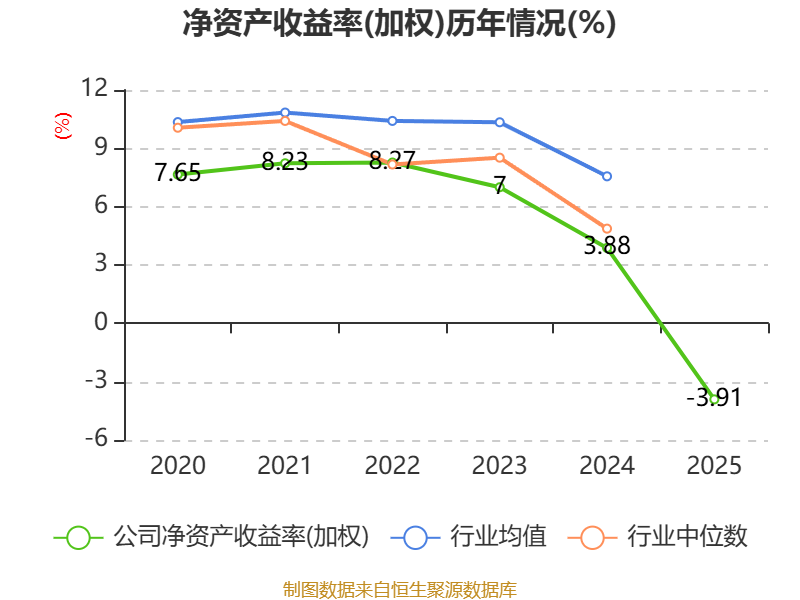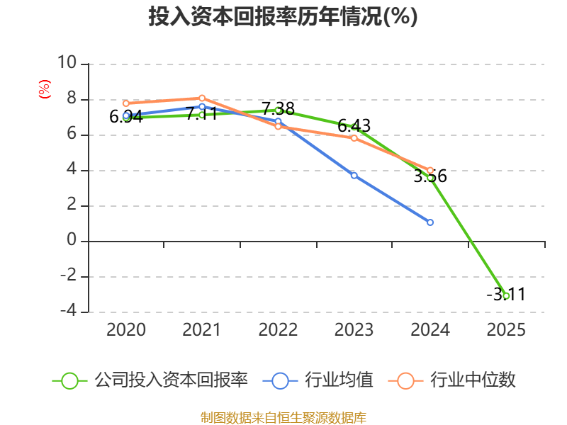 数据显示,2025年公司加权平均净资产收益率为-3.91%,较上年同期下降7.79个百分点。公司2025年投入资本回报率为-3.11%,较上年同期下降6.67个百分点。